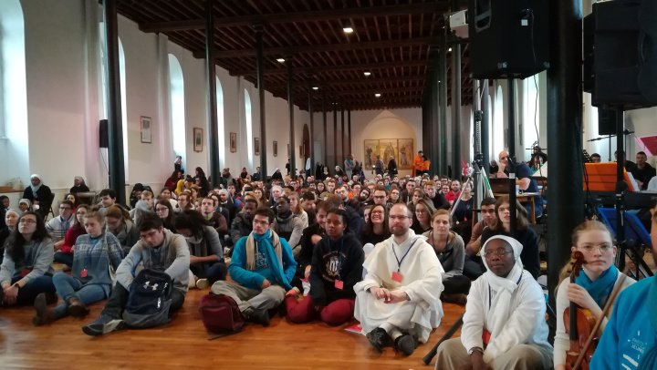 Après un temps d’accueil en matinée, nous nous sommes retrouvés dans la grande salle prévue à cet effet, afin de donner les directives pour la suite du week-end. Puis a suivi la présentation des jeunes venus de différents diocèses : Quimper et Léon, Saint- Brieuc et Tréguier, Rennes, Vannes, Angers, etc…